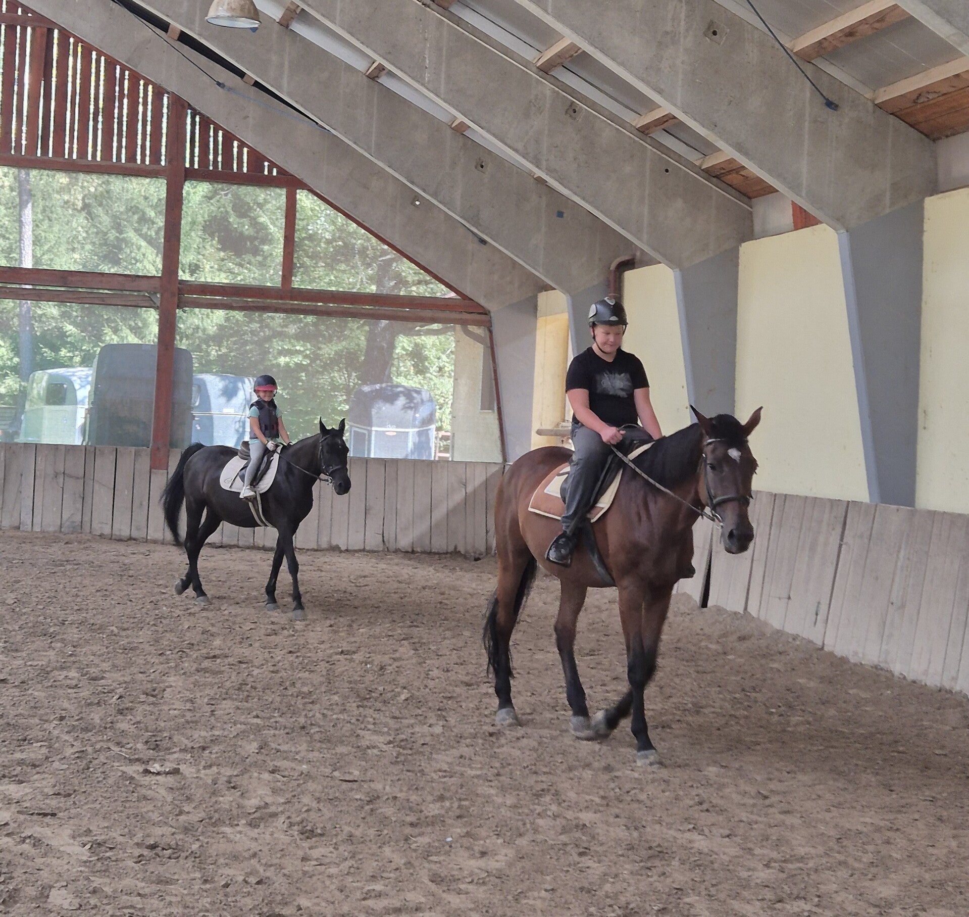 Na Kmetiji Ušen izvajamo šolo jahanja po programu Konjeniške zveze Slovenije. Učenje poteka v majhnih skupinah do največ 5 udeležencev, vsak pa jezdi svojega konja. Ena ura traja 60 minut, pri čemer si jahač konja pred jahanjem pripravi in ga po koncu tudi pospravi, saj verjamemo, da je celoten stik s konjem enako pomemben kot samo jahanje. Spodaj so predstavljeni različni tipi šol jahanja glede na cilje in nivo znanja jahača.